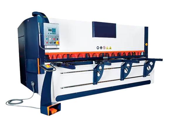 Lâminas de corte aplicadas em guilhotinas industriais para processamento preciso de chapas metálicas.